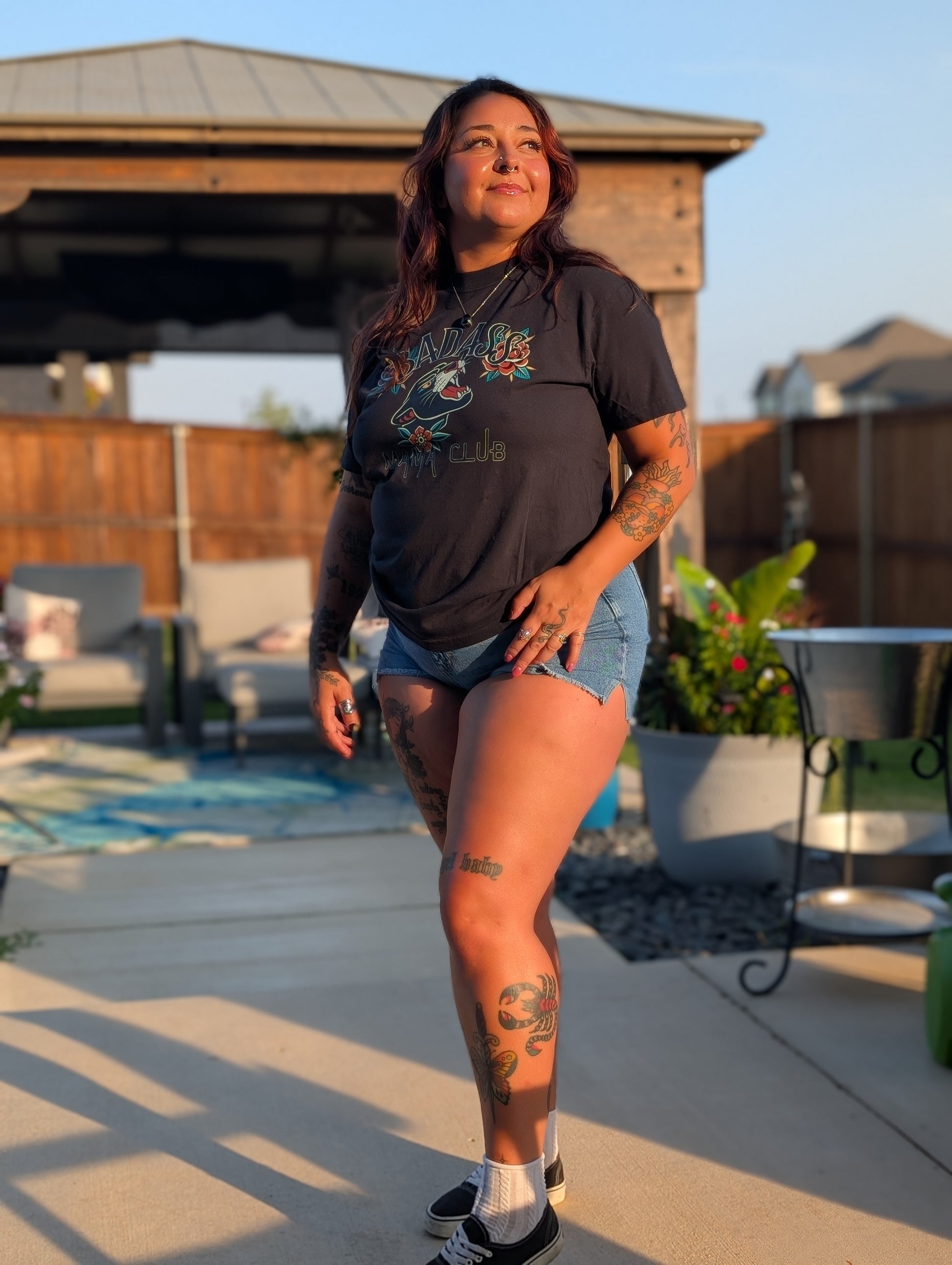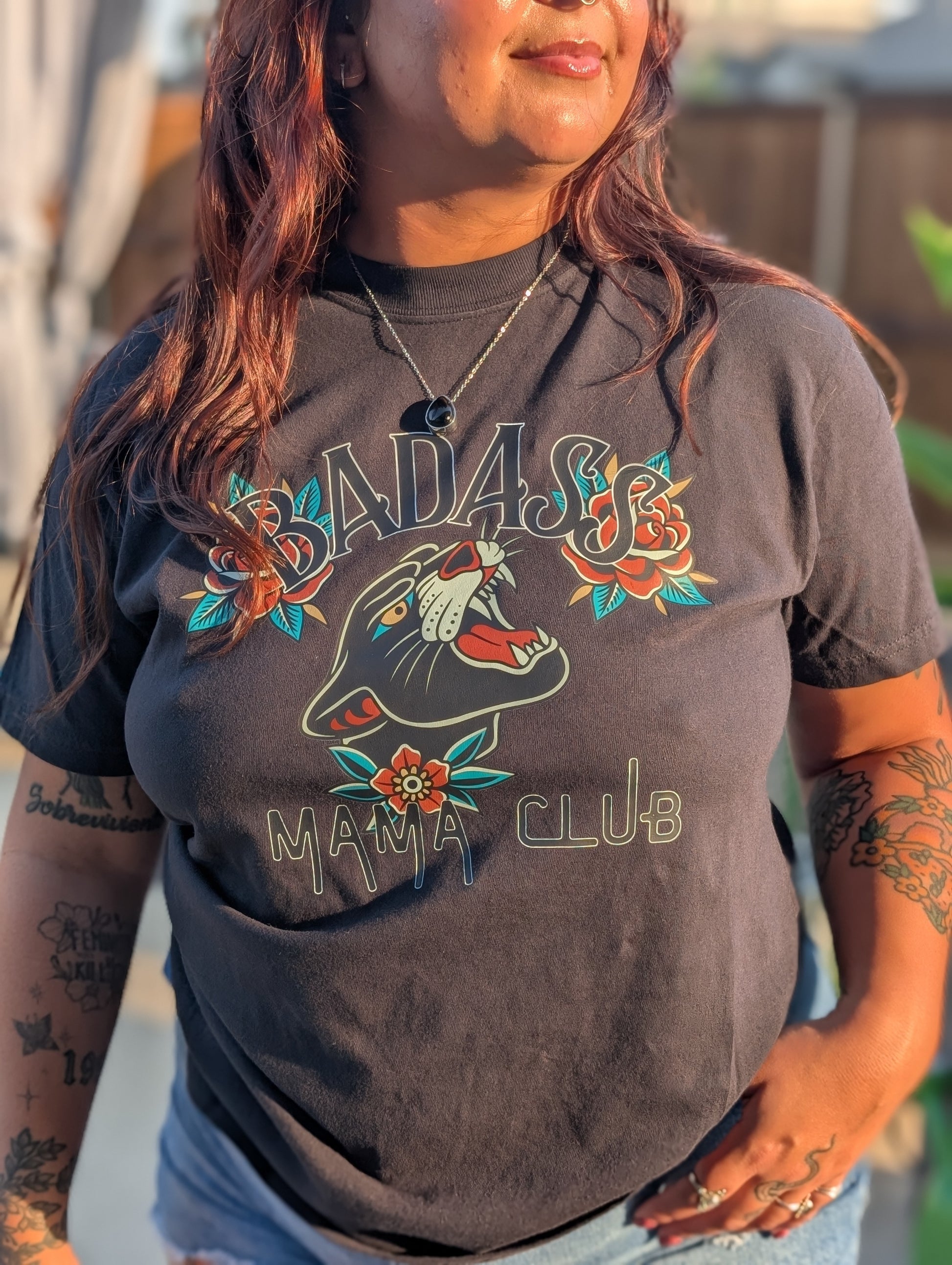Traditional style Bada** mama Club tee. Rockin' motherhood with style! 🖤