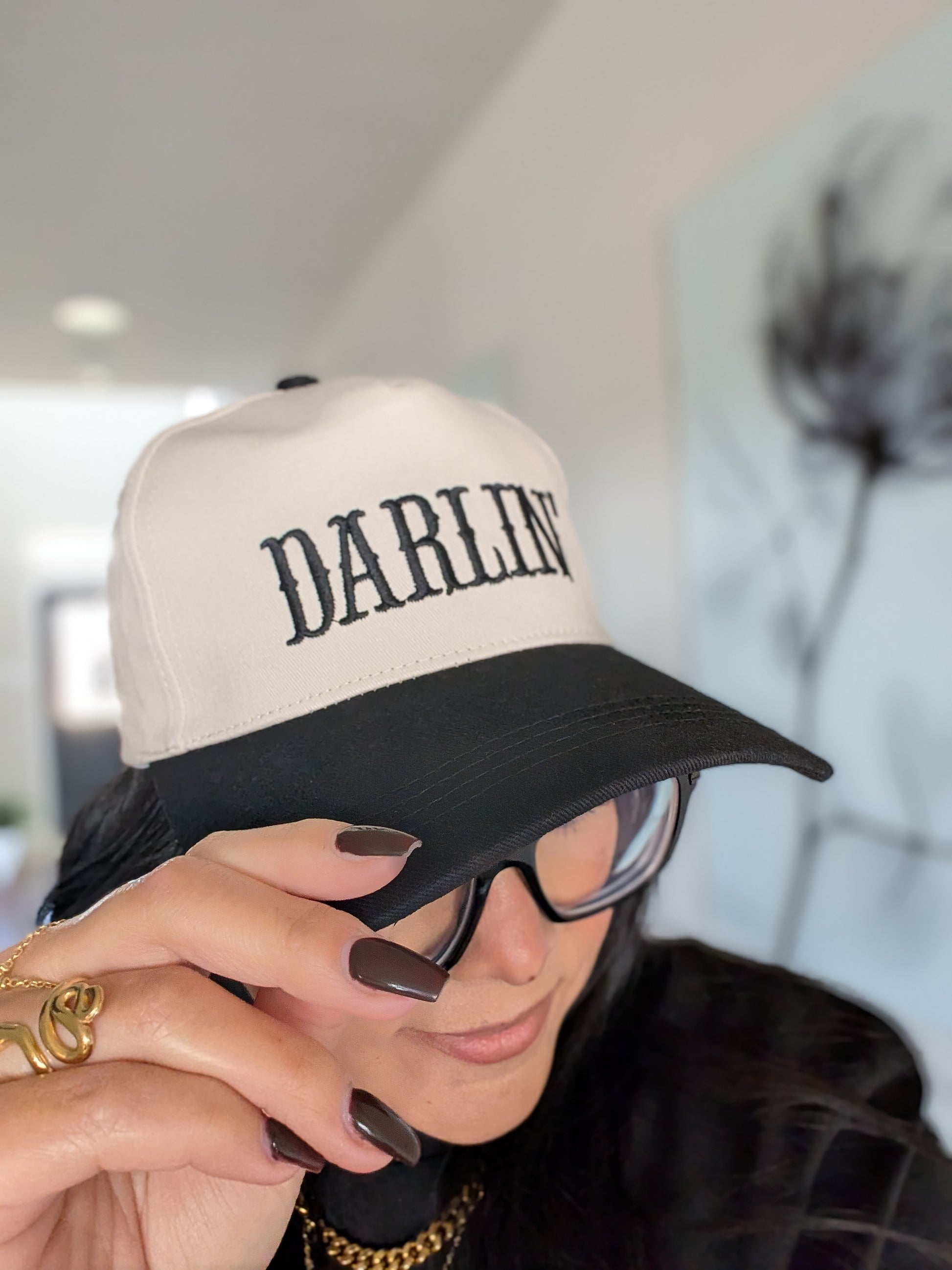 Darlin' Canvas embroidered hat features a 2 toned color design and adjustable fit. Lightweight and breathable. Material: cotton