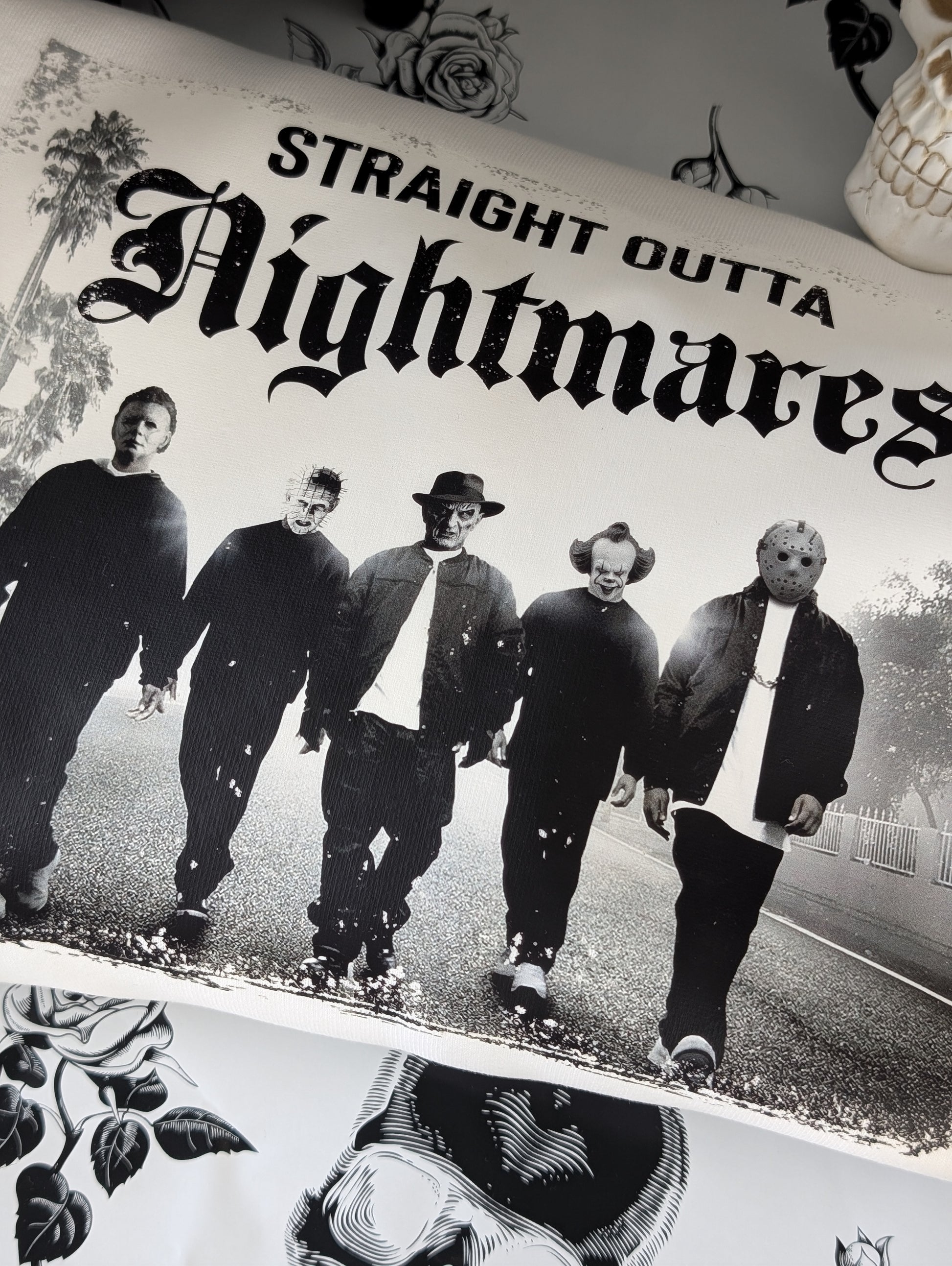 Straight outta Nightmares. Available in our premium tee or Crewneck sweatshirt.